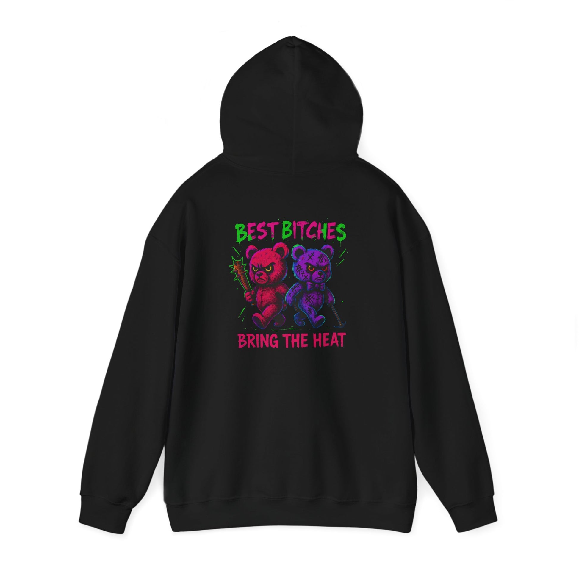 This ain’t your average bestie hoodie. This is “Best Bitches Bring the Heat” energy—two stitched-up plushies rollin’ deep, armed with attitude and ready to wreck shit with a smile. Back design shows off your ride-or-die status in savage pastel chaos, while the front proudly reps the “Best Bitches Club” in bold, punchy style. Add your names to the sleeves and make this unbreakable bond wearable. Cute. Unhinged. Custom as hell.
