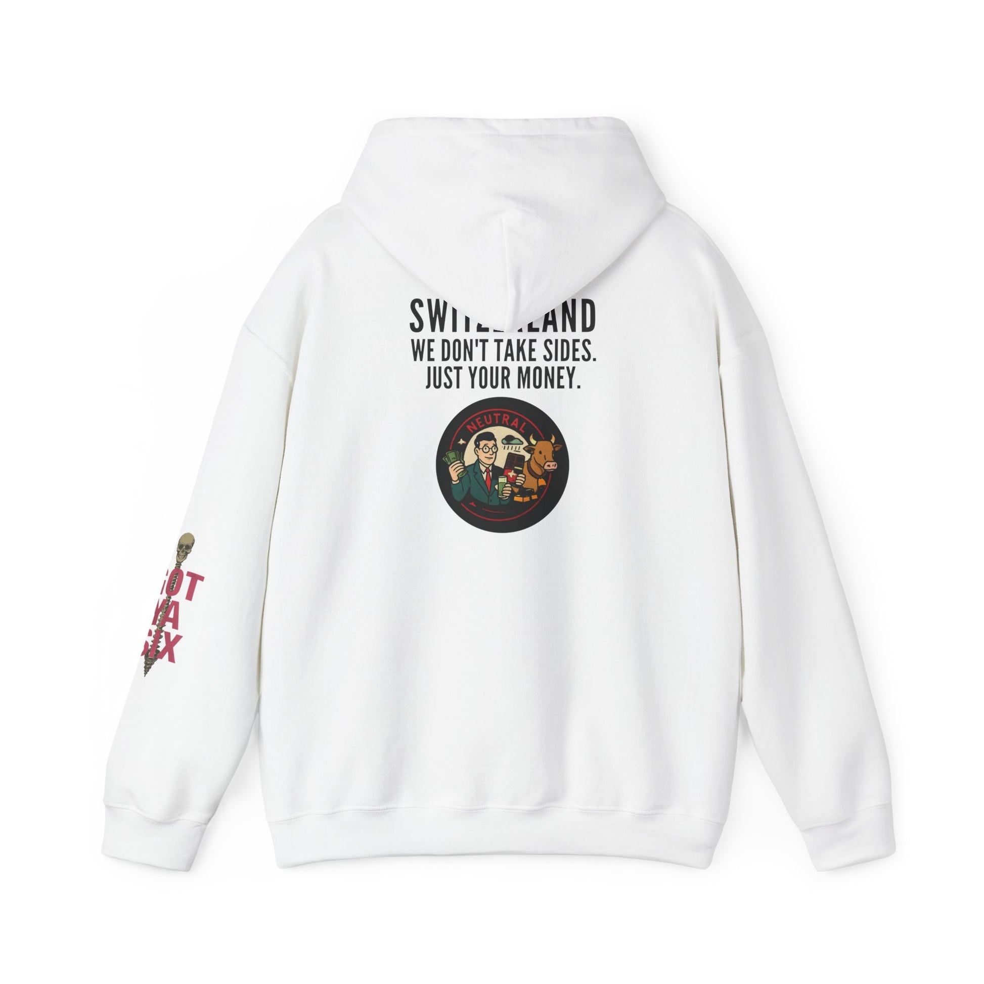 Switzerland: where even neutrality is monetized. "We don’t take sides. Just your money." This hoodie is the financial flex no one asked for—but everyone secretly respects.