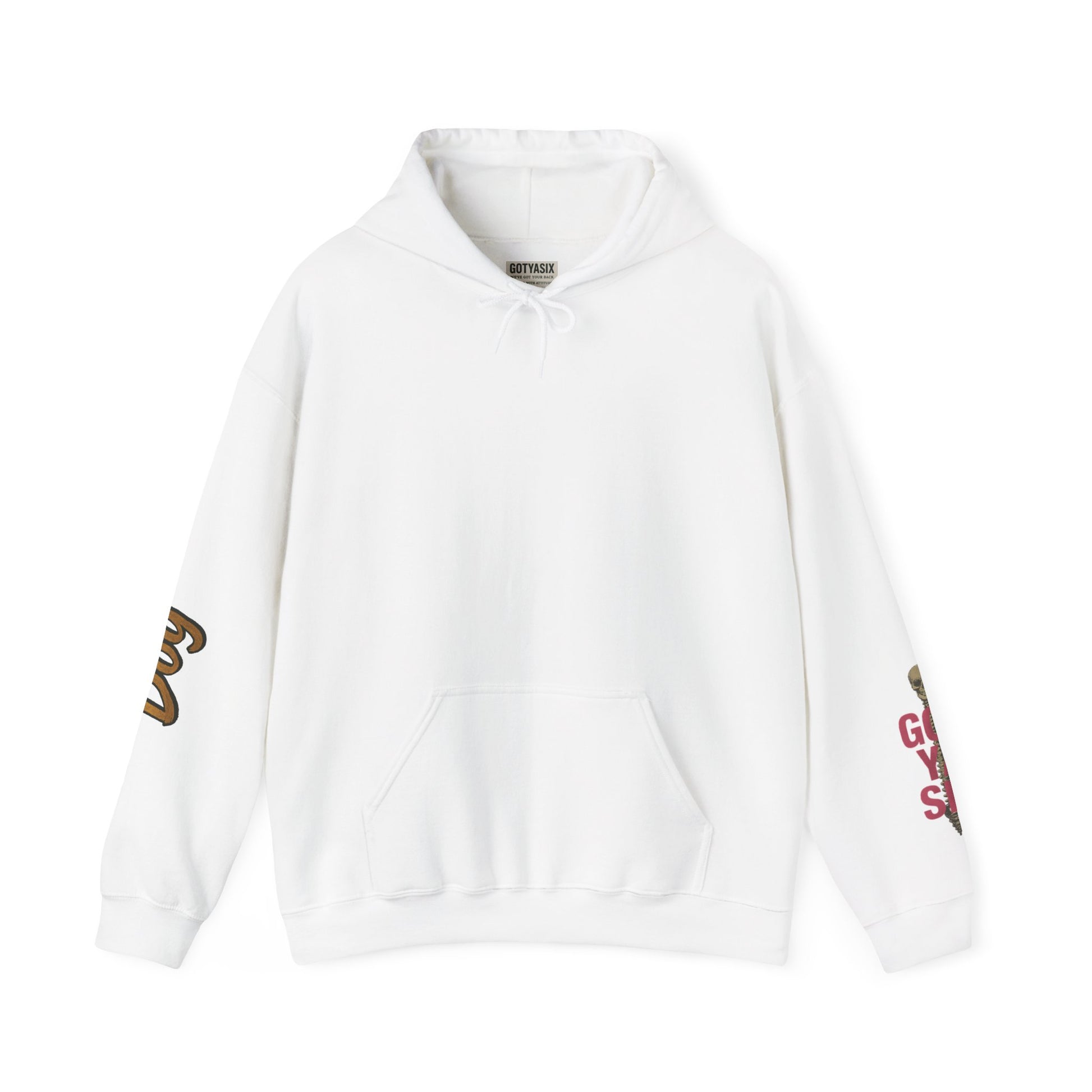 This unisex heavy blend hooded sweatshirt is relaxation itself. Made with a thick blend of cotton and polyester, it feels plush, soft and warm, a perfect choice for any cold day. In the front, the spacious kangaroo pocket adds daily practicality while the hood's drawstring is the same color as the base sweater for extra style points.